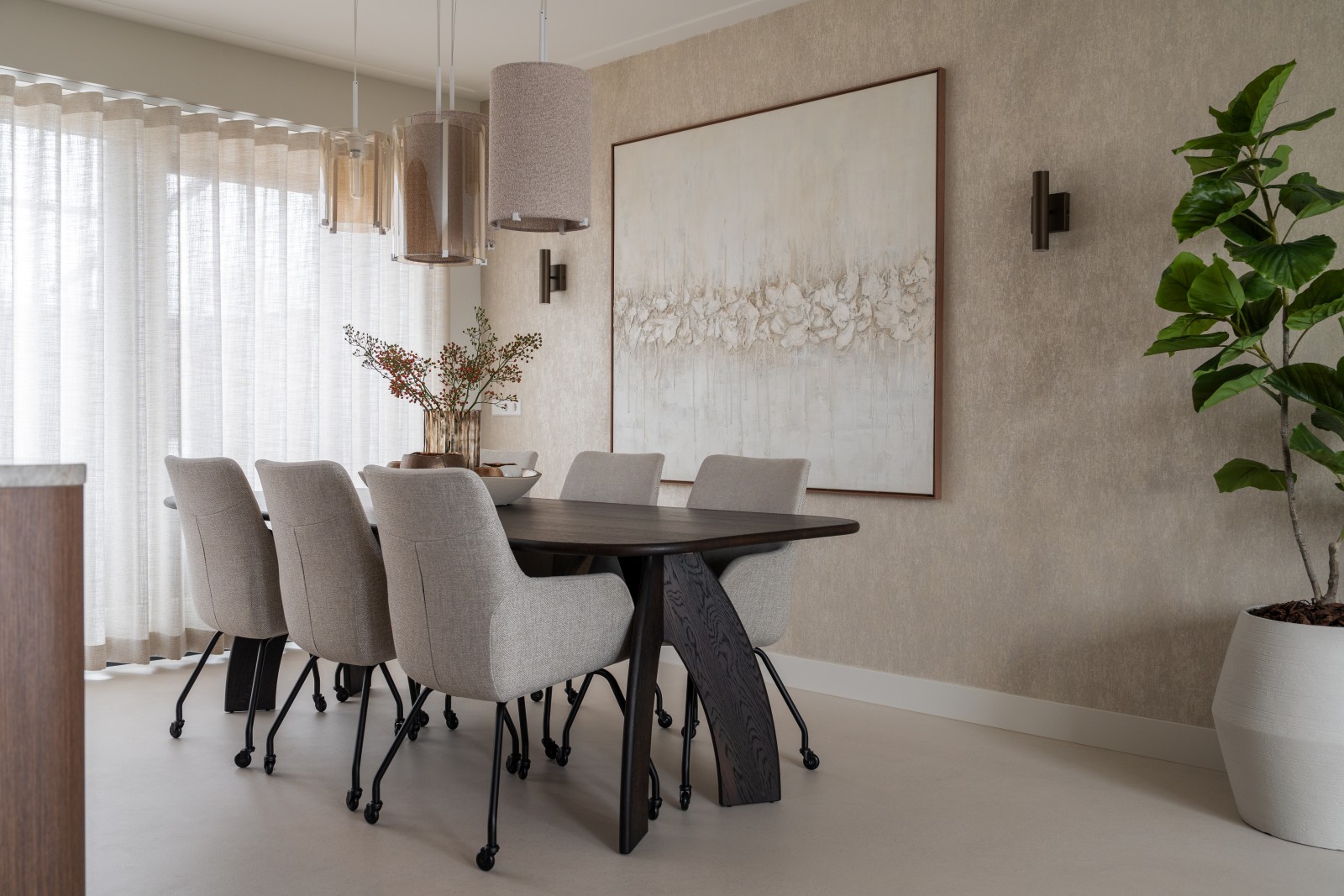 Een goed gekozen kleur versterkt uw inrichting, uw gordijnen, de vloer, uw meubels, enzovoort. En als daar dan ook de meubels, verlichting en de juiste accessoires er op afgestemd zijn, voelt uw huis als een warm deken!